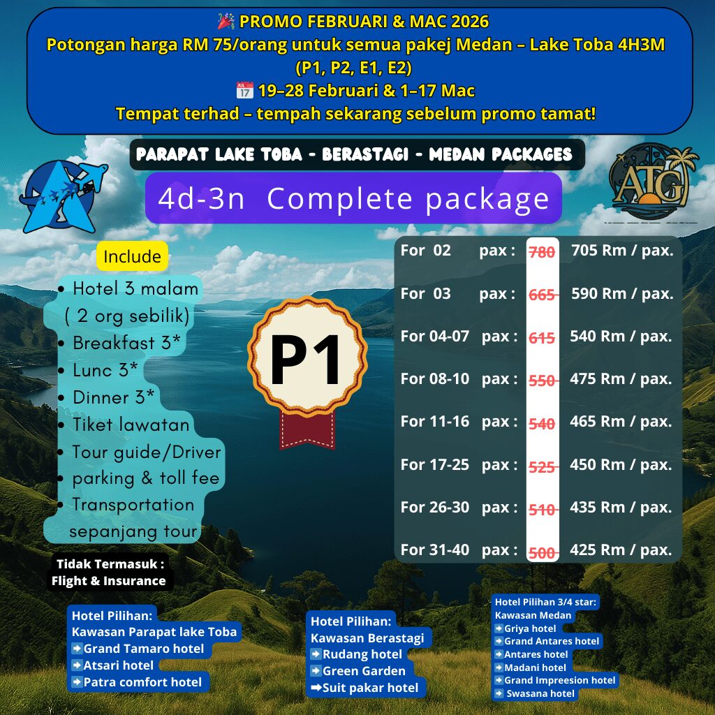 Potongan harga RM 75/orang untuk semua pakej Medan – Lake Toba 4H3M